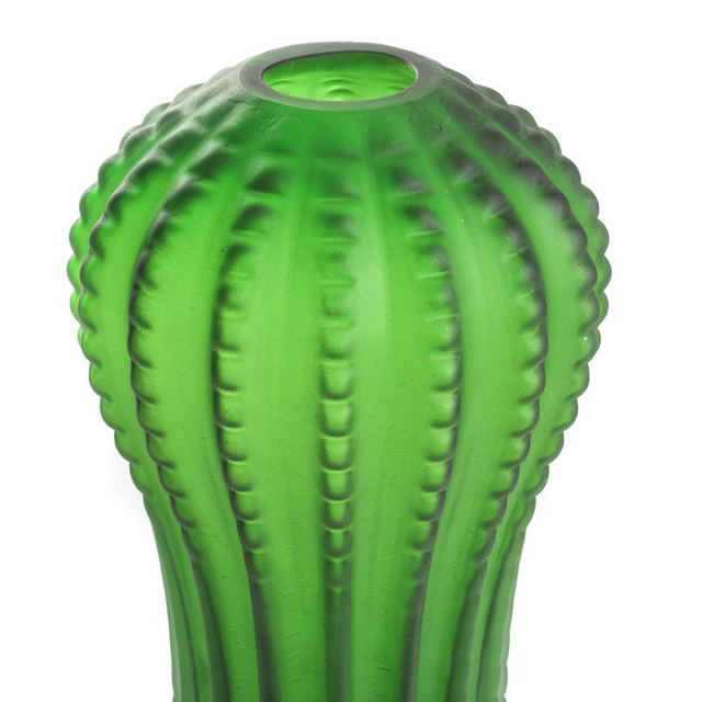 Vase cactus évasé en verre vert teint